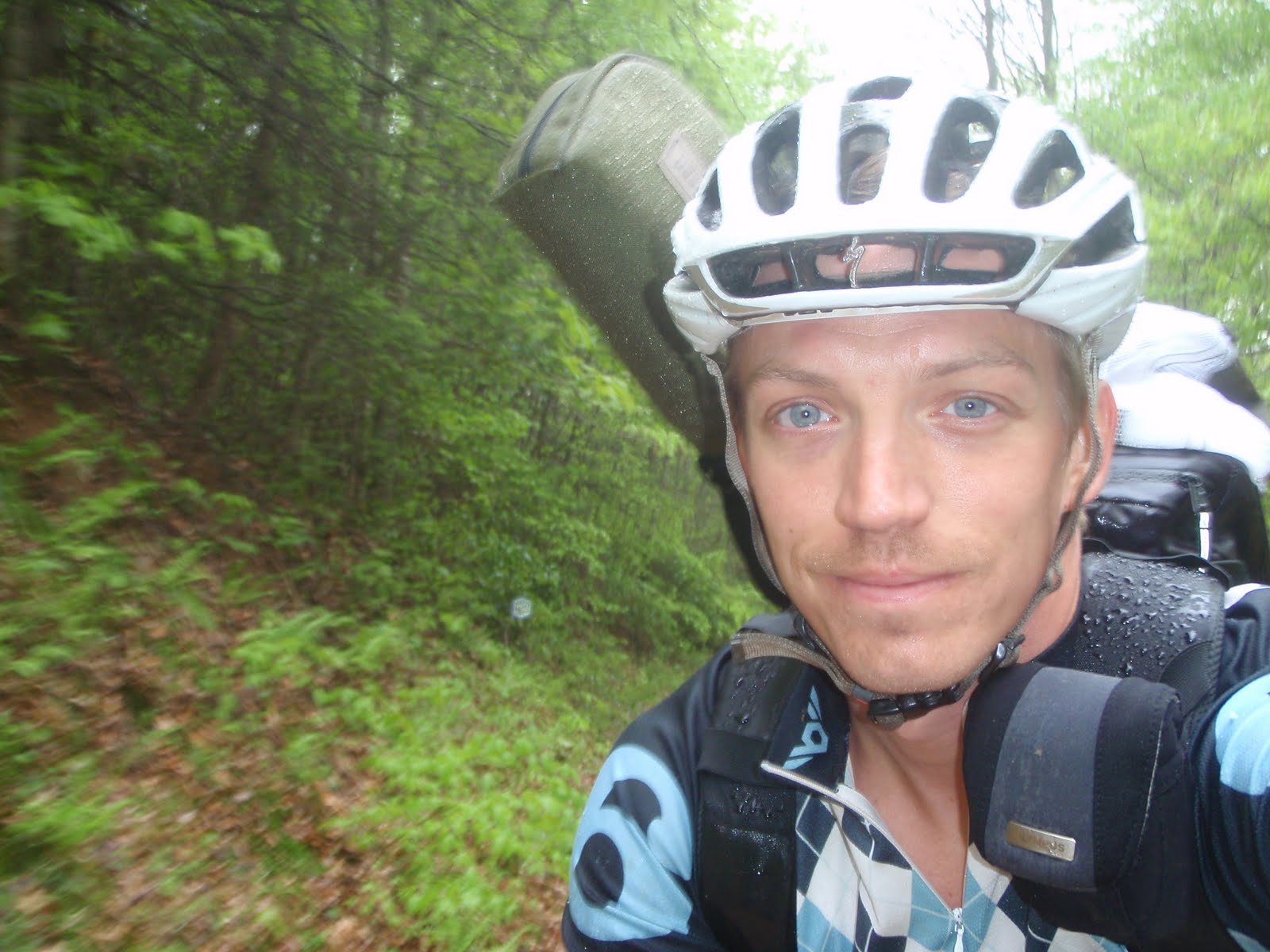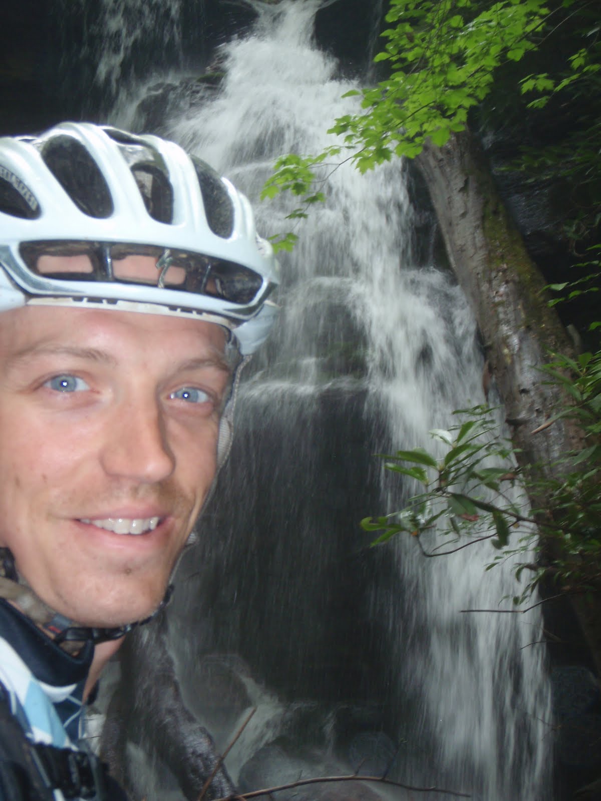Ahh Stoney Fork. You Suck. I forget every time I go out there that its actually pretty unrelentingly steep, and now looser than ever. I stuck with Jay for a bit, but let him go to pull off and splash in two of the waterfalls on the way up. Eventually, I actually caught him, standing, dejected in the middle of the road. We remounted together, and then he needed another break. This break involved laying down in the road. I left from this point and finished it off, struggling to keep my bike upright, and tracking, in the loosest and steepest sections just before the final right hand turn. Happy to be on top, I turned back and watched for Jay. He emerged, broken, around the corner, one foot in front of the other, and bike next to him. Best quote of the day. "I don't know why you'd ever do this more than once." Jay had done Stoney Fork, and would never do it again. George was next, looking surprisingly good after yesterday's cramping and walking. I was imagining him coming up to me and punching me, but he was in good spirits. The top does a great job of erasing the last hour. Guy rounded the corner last, after having to walk a few stretches due to a pulled groin aggravated over the past few days.